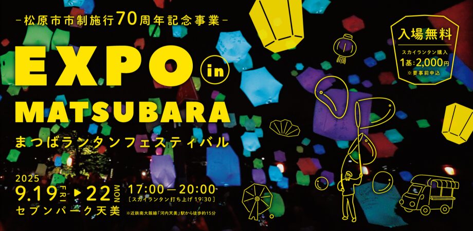 松原市で夜空を彩るスカイランタンの打ち上げを開催!世界各国の料理を味わあえる国際フードキッチンカーなども同時開催!ステージショーや体験ブースなどもあり!